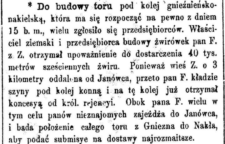 Informacja prasowa o nadchodzącym rozpoczęciu robót przy budowie linii kolejowej Gniezno – Nakło nad Notecią (obecnie linia nr 281).