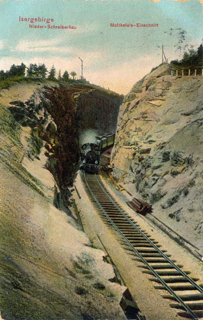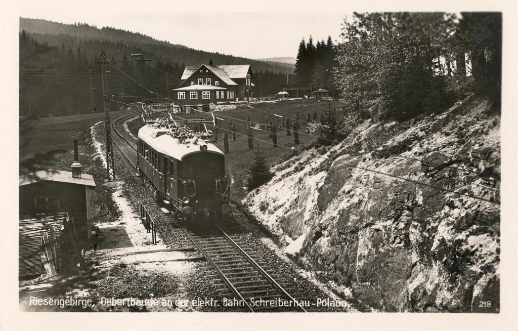 W 1911 państwo pruskie przystąpiło do elektryfikacji swojego odcinka Kolei Izerskiej, w ramach rządowego projektu Śląska Kolej Górska. Zastosowano zasilanie prądem zmiennym o napięciu 15 kV i częstotliwości 162/3 Hz. I wojna światowa wpłynęła na znaczne opóźnienie tego przedsięwzięcia, niemniej elektryfikację całego odcinka z Jeleniej Góry do Kořenova zakończono 15 lutego 1923.