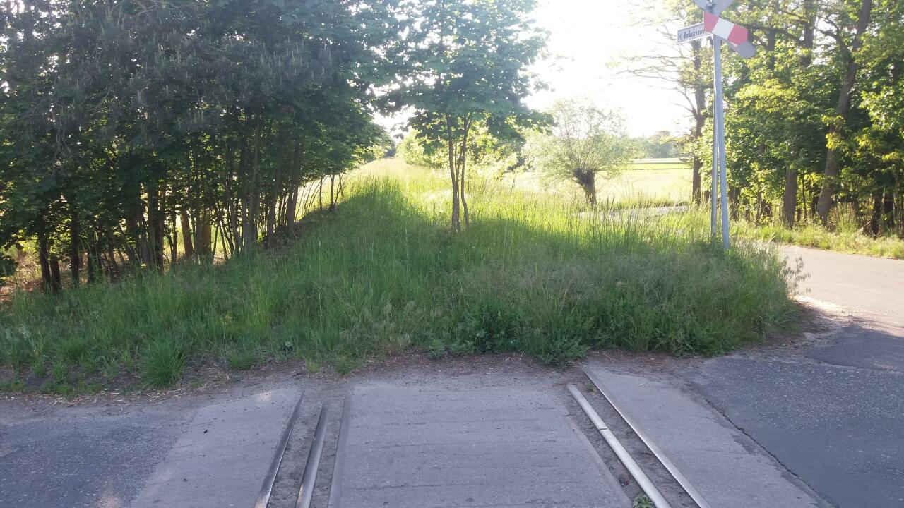 Przejazd kolejowy na drodze pomiędzy Borowem a Czempiniem. Widok w kierunku Czempinia.