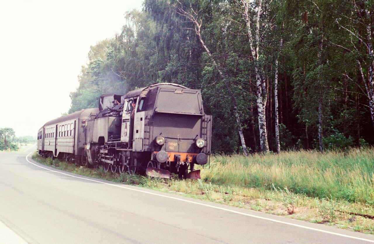 TKt48-168 z pociągiem Śrem - Czempiń na wysokości wsi Szymanowo.