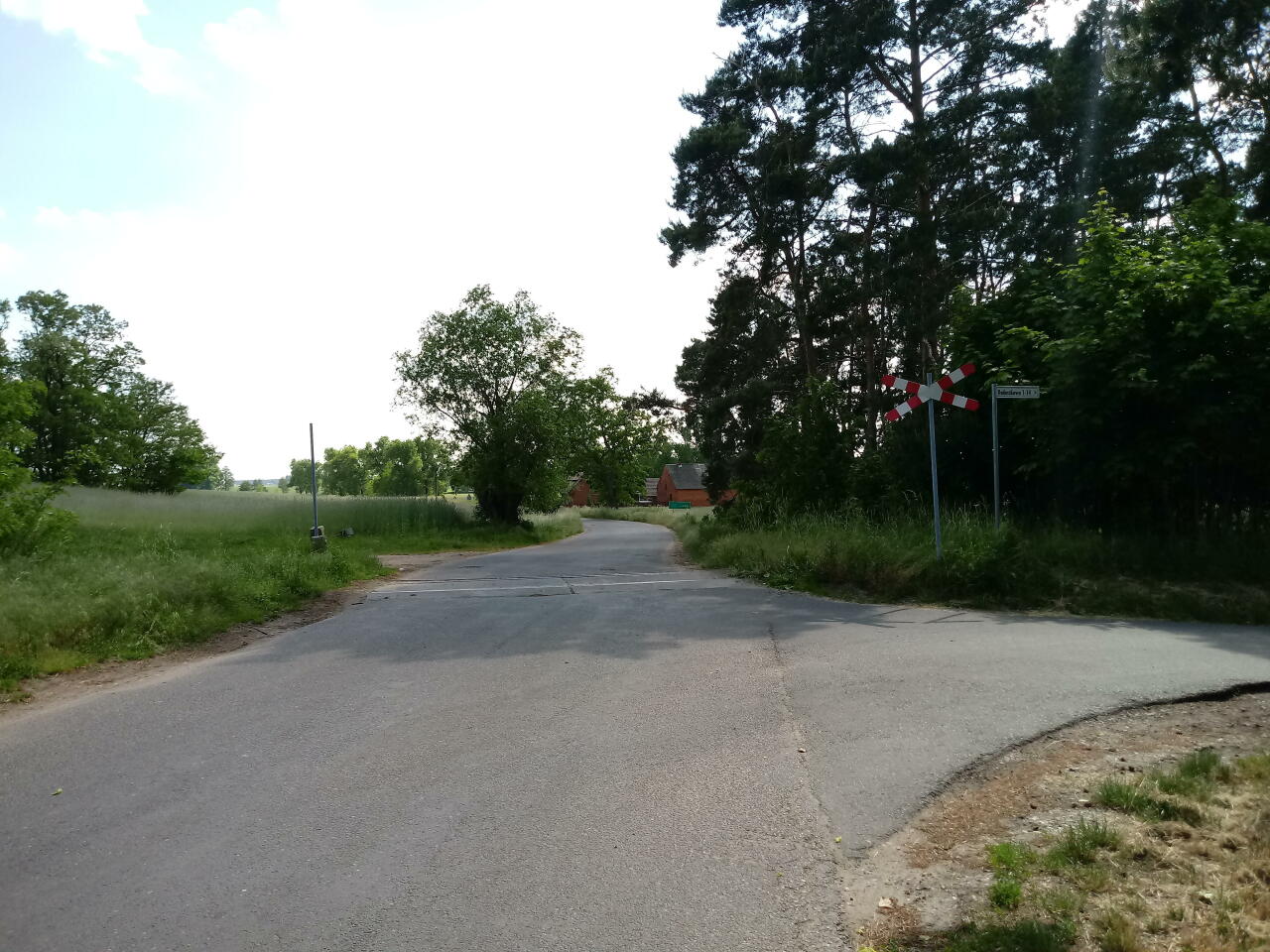 Przejazd kolejowy na drodze pomiędzy Czempiniem a Borowem. Widok w kierunku przystanku Borowo.