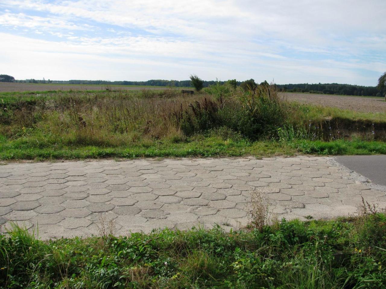 Wyłożony płytami chodnikowymi przejazd w miejscowości Godziętowy, ok 600m przed stacją. Szyny schowane pod grubą warstwą trawy. Widok w kierunku Ostrzeszowa.