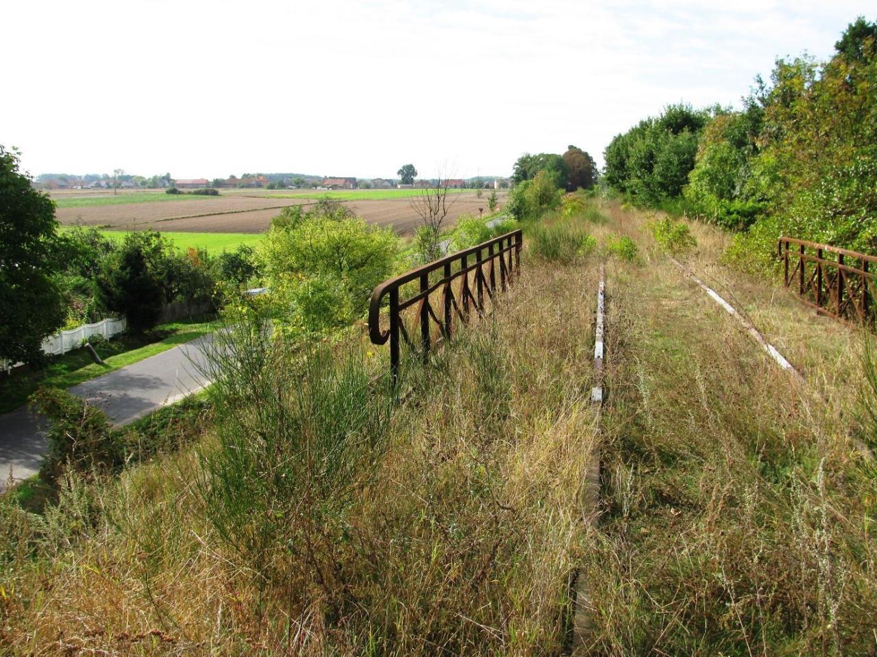 Widok na wiadukt nieczynnej linii 383 w miejscowości Rogaszyce z wyremontowanego wiaduktu linii 272. W lewo Ostrzeszów, w prawo Godziętowy.