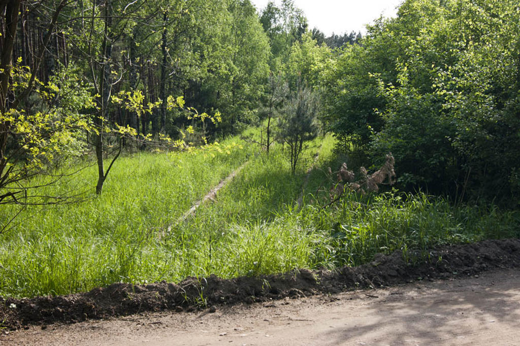 Przejazd kolejowy na leśnej drodze prowadzącej do Piaskowni Rogaszyce. Widok w stronę Grabowa.