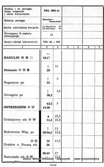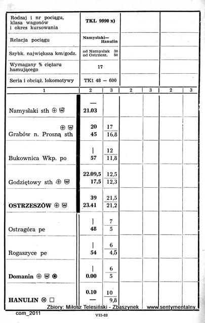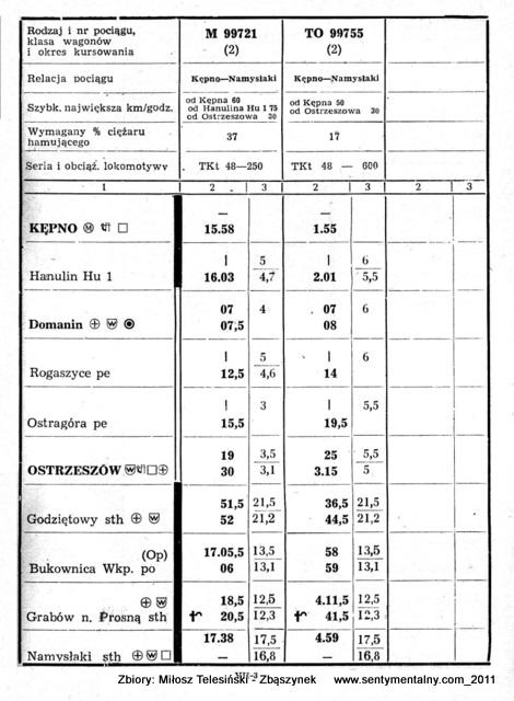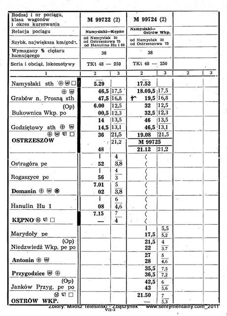 Służbowy rozkład jazdy podciągów towarowych z lat 1972/73.