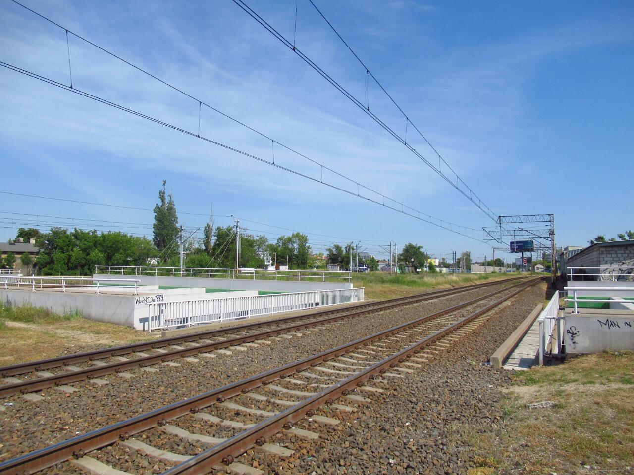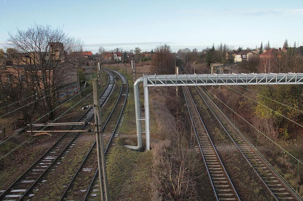 Widok z kładki między ul. Łozowa-Wiśniowa, po prawej łącznica 801 kierunek Poznań Górczyn, po lewej tory kierunek Luboń koło Poznania.