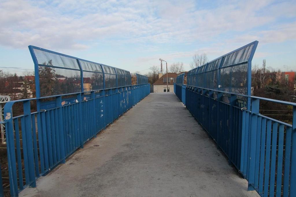 Wejście na kładkę od strony ul. Łozowej, linia PSK - Luboń koło Poznania oraz łącznica 801.