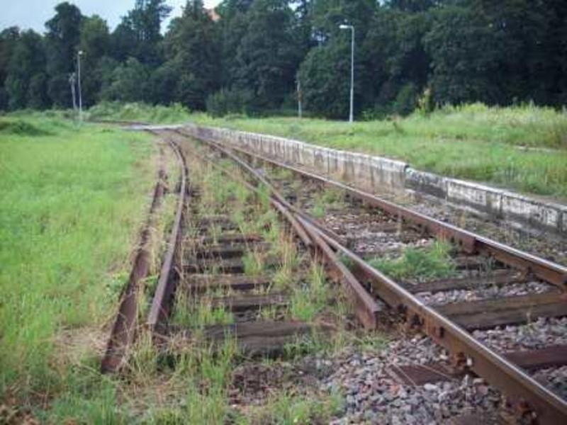 Południowo-wschodnia głowica dawnej stacji, wschodnia grupa torów, obsługująca ruch po lk 322. Rozjazd rozpoczynający dawniej tor dodatkowy. Z prawej peron 4. Widok w kierunku południowo-wschodnim (Stronie Śląskie).