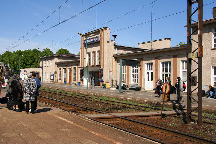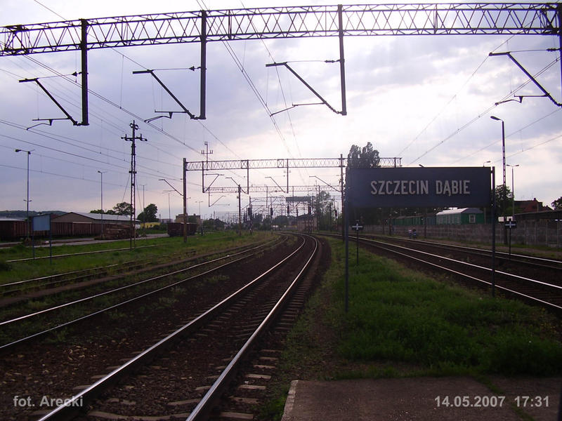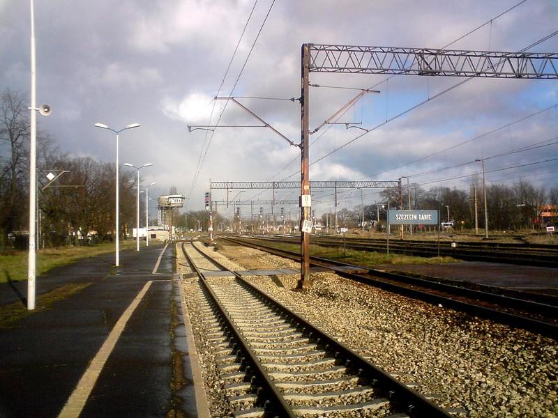 Widok ogólny na stację Szczecin Dąbie. Kierunek Szczecin Główny.
