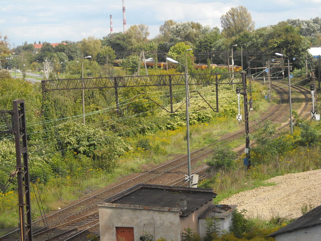 Sporo oddalona od stacji właściwej wieża wodna. widok z wiaduktu na ul. Chociebuskiej.