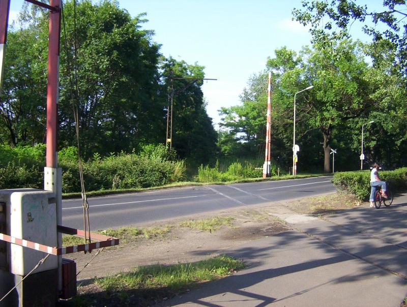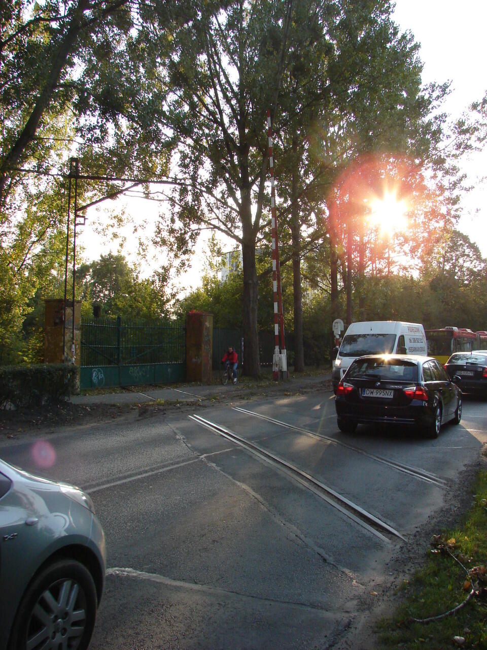 Przejazd kolejowy na ul. Strzegomskiej na krótkim odcinku łączącym stację Wrocław Gądów z dawnym Pafawagiem.