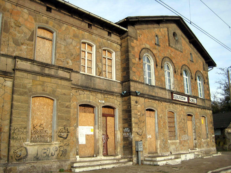 Opis ogólny: Jest to najwyżej położona stacja na całej linii. Opis infrastruktury: drugi peron ziemny. Możliwe, że istnieje tam peron trzeci (także ziemny, dodatkowo drewniana krawędź), wykorzystywany przy (niekompletnym i zrobionym "na odwalonego") remoncie toru 2 na odcinku Boguszów Gorce Wschód - Wałbrzych Główny. (info: Marcin Czech, 21-04-2008) Peron 1 i 2 zostały wyremontowane. Peron 1 przylegający do budynku dworca jest obecnie wysokokrawędziowy. Od stacji odchodziła bocznica do zakładu wzbogacania rudy barytowej. Zakład i tor do niego nieczynne mniej więcej od początku XXI wieku. (info: wasiukibic, 4 VII 2015) Opis budynków: Kasa i poczekalnia zamknięta latem 2006. Dół budynku zamknięty na głucho, na górze mieszkania. Dworzec kolejowy jest całkowicie opuszczony po wyprowadzce ostatnich lokatorów mieszkających na pietrze. Niegdyś w bocznej części budynku mieściła się hurtownia - taki przynajmniej widnieje napis na szyldzie. Ruchem na stacji steruje jedna, centralna nastawnia zlokalizowana na wschód od wiaduktu kolejowego nad ul. Dworcową. Dawna nastawnia znajduje się na zachód od tego wiaduktu. (info: wasiukibic, 4 VII 2015) |