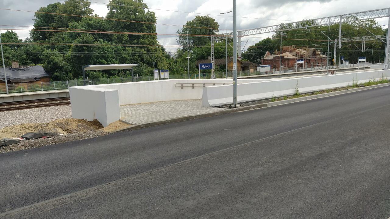 Opis ogólny: Na stacji 4 tory. Od stacji odchodzą dwie bocznice. (info: Karol Romaniuk, 2005-09-02) Od początku powstania linii była to stacja. Położona jest w Konopnicy, właśnie tak nazywała się pierwotnie. Nazwę na Motycz zmieniono dopiero w okresie międzywojennym podczas gruntownej inwentaryzacji Polskich Kolei Państwowych. (info: Adam Zwolski, 21-10-2009) Opis infrastruktury: Dwa tory główne i dwa główne dodatkowe oraz jeden dodatkowy niezelektryfikowany. Po torach 1 i 2 odbywają się przebiegi bez zatrzymania. Tor główny dodatkowy nr 3 jednokierunkowy z przebiegiem w kierunku Lublina. Dodatkowo odchodzą od niego dwie bocznice. Jedna nieopodal nastawni dysponującej, prowadzi do podstacji Energetyki (obecnie nieużywana), druga zaś, w przeciwnym końcu stacji do paszarni "Bacutil", również nieużywana, ale utrzymywana w pełnej gotowości. Tor nr 4 dwukierunkowy. Tor boczny nr 6 nie posiada ani trakcji, ani semaforów. Typowy zdawczo - odbiorczy, obecnie używany przez skład opału i złomu oraz żwirownię. Wszystkie tory stacyjne w pełni sprawne, używane zgodnie z przeznaczeniem. Na stacji zastosowane mechaniczne urządzenia scentralizowane oraz semafory świetlne. (info: Adam Zwolski, 21-10-2009) Opis budynków: Budynek stacji murowany z czerwonej cegły, nieotynkowany. Parter plus jakieś poddasze. Obecnie w znacznym stopniu zdewastowany, wejście do poczekalni zamknięte, kasa biletowa zamknięta już dawno. Rampa towarowa (skład złomu i opału) posiada murowany magazyn. Przy zachodnim krańcu stacji murowana, piętrowa nastawnia dysponująca. Nastawnia wykonawcza od strony wschodniej parterowa. Ponadto na terenie stacji znajduje się niedawno odremontowana, murowana strażnica przejazdowa. (info: Adam Zwolski, 21-10-2009). W latach 2024-2025 w ramach projektu "Budowa Systemu Dynamicznej Informacji Pasażerskiej na linii kolejowej nr 7 na odcinku Otwock – Lublin" realizowanego ze środków finansowych Krajowego Planu Odbudowy i Zwiększania Odporności (KPO) zabudowano urządzenia dynamicznej informacji pasażerskiej oraz monitoringu wizyjnego. |