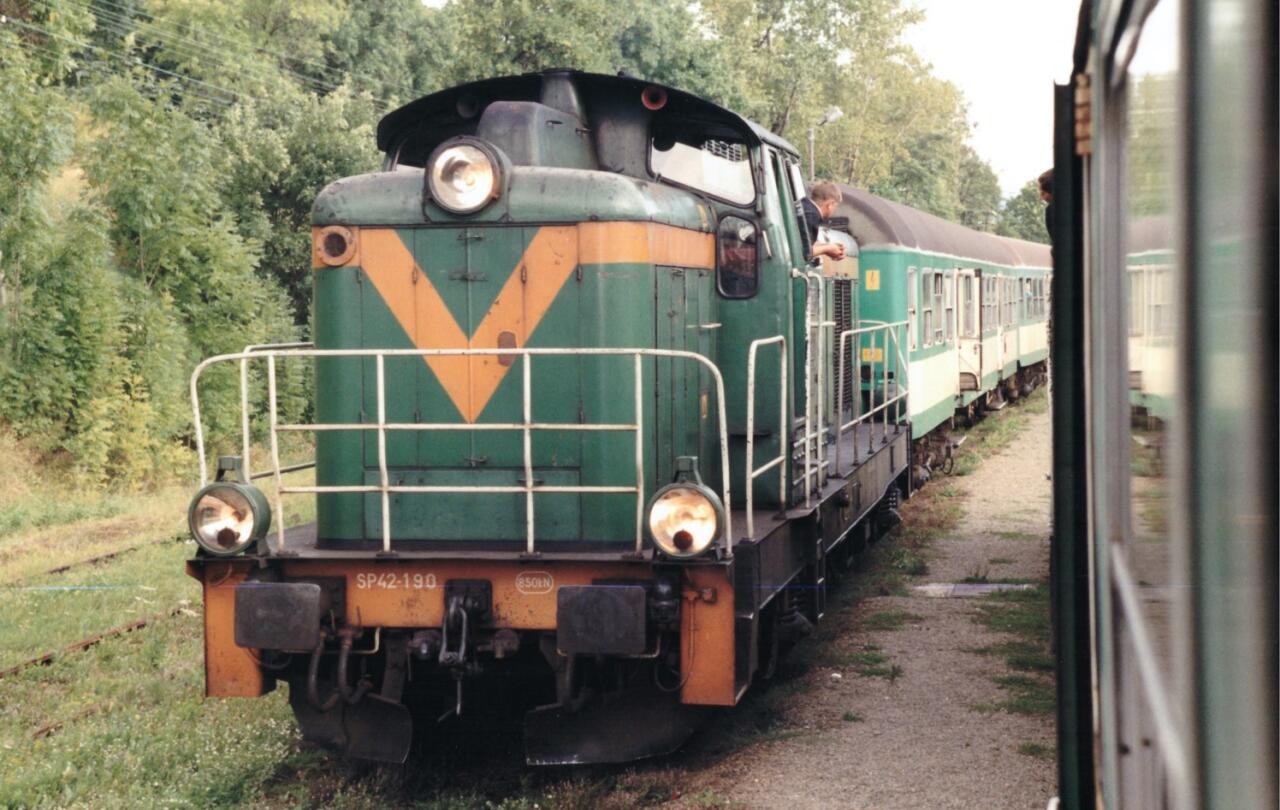 Mijanka z pociągiem do Chabówki prowadzonym przez SP42-190.