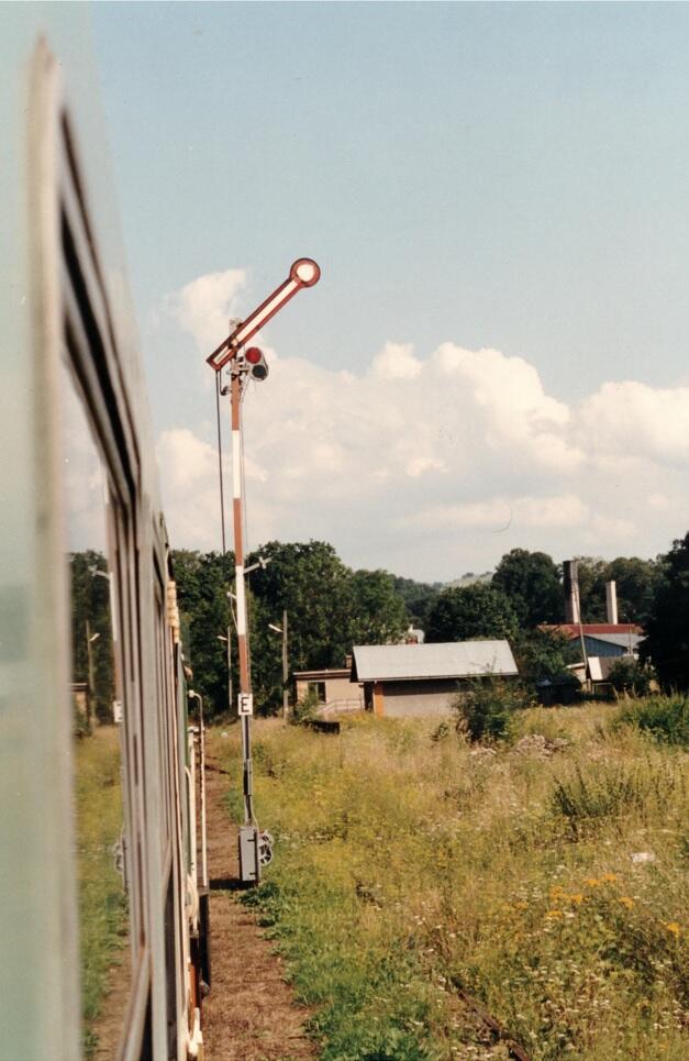 Semafory wyjazdowe od strony Nowego Sącza. Stoi jeszcze drugi semafor dwuramienny D - w stronę Kasiny były ustawione 3 semafory D, E, F.