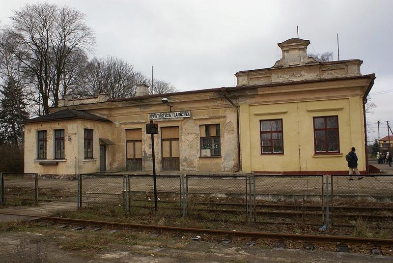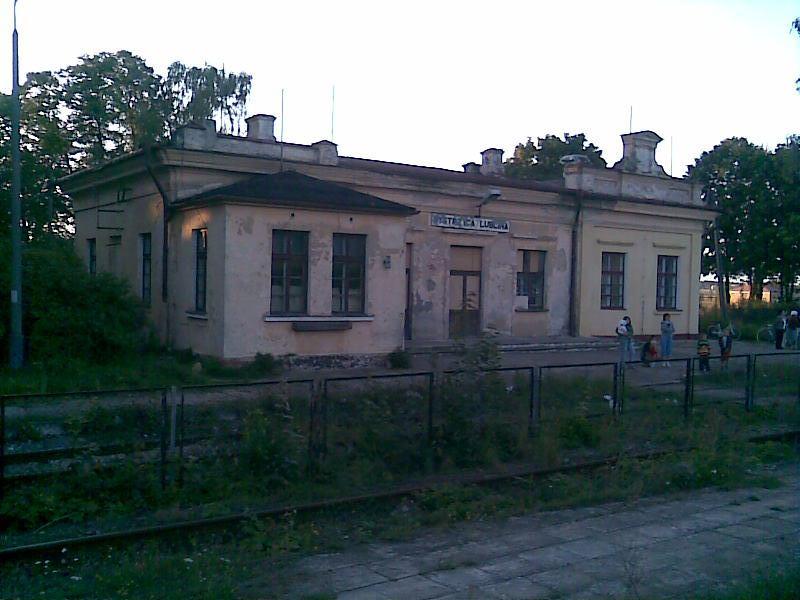 Bystrzyca koło Lublina, budynek stacji widziany z pociągu.