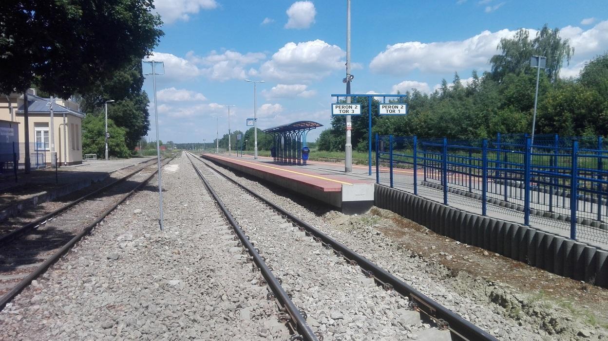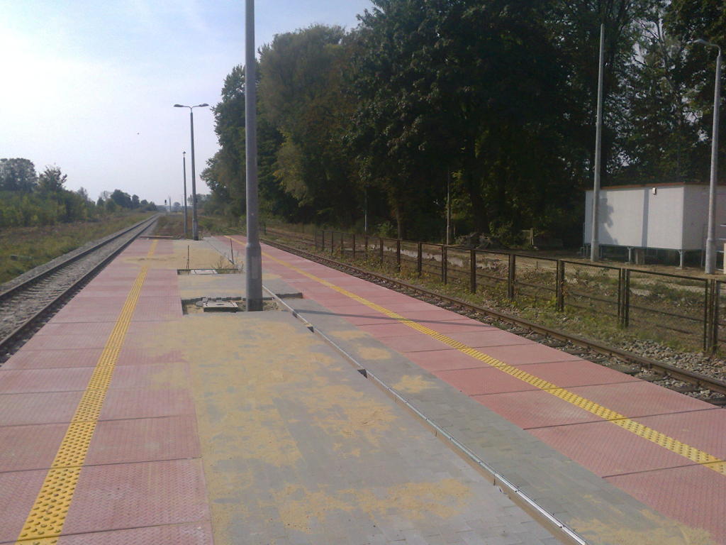 Widok z odnowionego peronu w kierunku Lubartowa/Łukowa. Z prawej strony widać skrajny tor nr 6 - jest to odchodzący w prawo (widać to na fotce) tor bocznicy prowadzącej do docelowych obiektów zlokalizowanych w znacznej odległości od stacji.