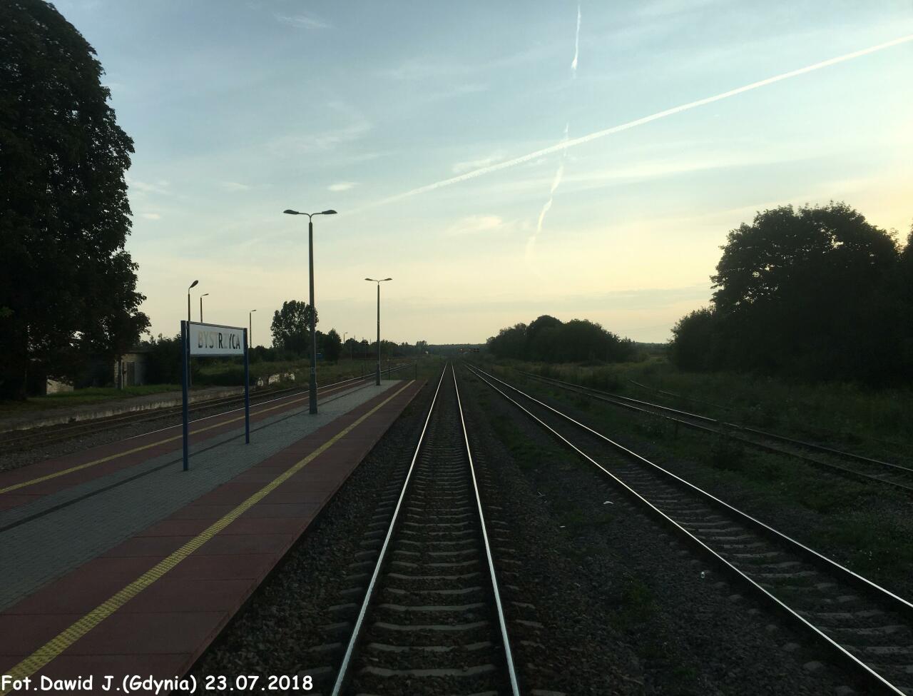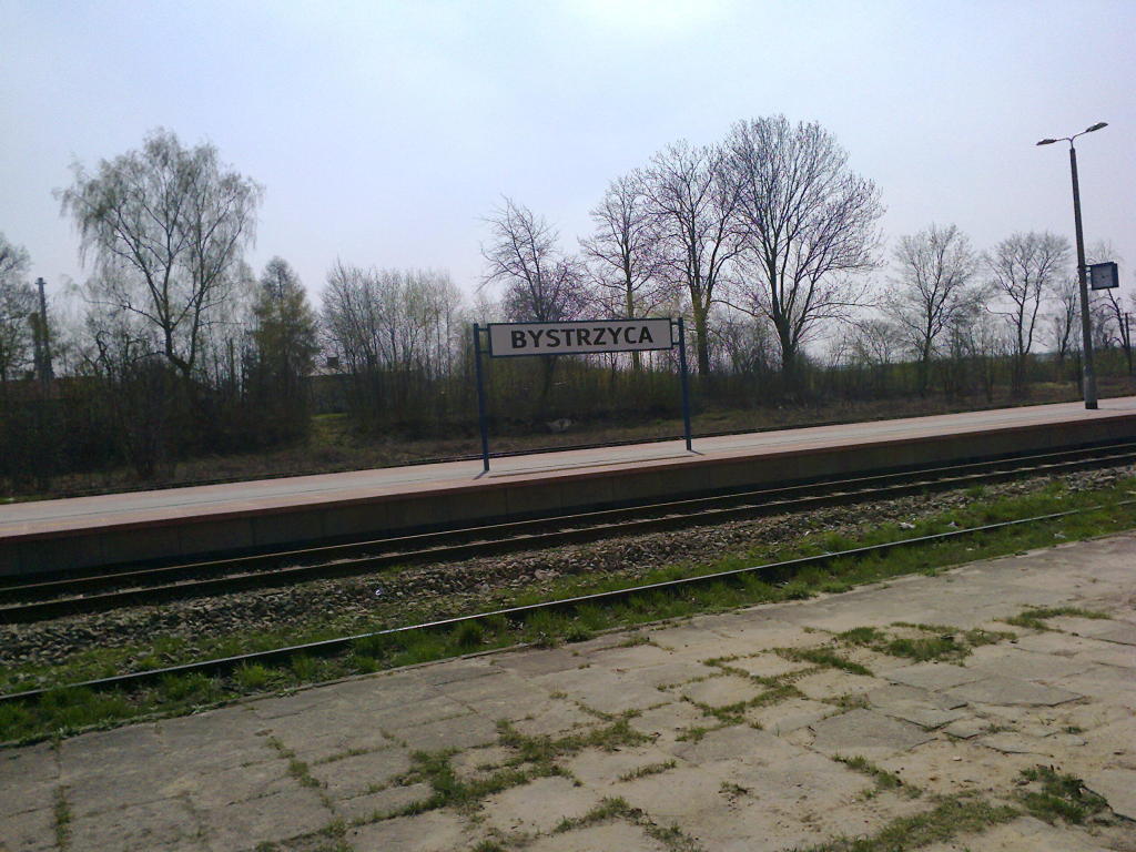 Bystrzyca. Widok na tablice i przy okazji fragment nieużywanego pierwszego peronu.