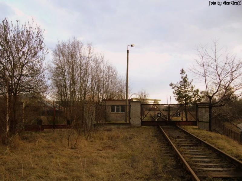 Widok na bramę wjazdową. Po lewej równia po zlikwidowanym torze do ciepłowni.