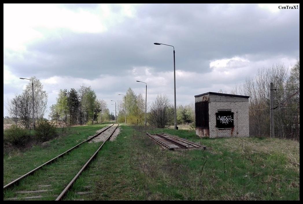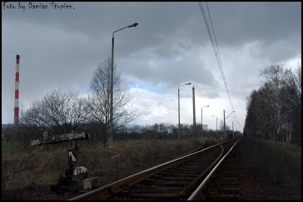 Po prawej tor dojazdowy do zakładu a po lewej w stronę torów odbiorczo-zdawczych.W tle po lewej widać budynek wagi.