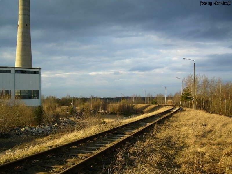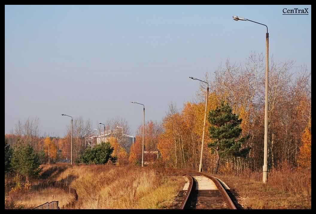 Widok w kierunku bramy wjazdowej. Na lewo odgałęział się tor do ciepłowni.