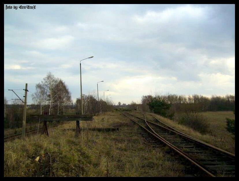 Po lewej kozioł kończący tor wagowy a po prawej zaczyna się grupa zdawczo-odbiorcza PKPu. Po lewej linia 144.