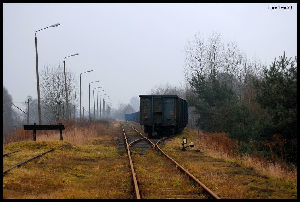 Po prawej tor wyciągowy kończący się kozłem a przed nim widoczne wystawione na "zewnątrz" wagony zakładowe FAZOSu. Chemet użytkujący obecnie bocznicę, cierpi na brak miejsca na torach wewnątrz-zakładowych.