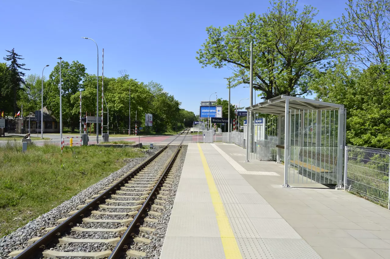 2021: Przystanek budowany na nowo w ramach rewitalizacji linii. Istnienie przystanku wynika z niemieckich map (przynajmniej od 1916 roku), wykazu nazw z roku 1945, oraz z polskiej mapki z 1946. W żadnym rozkładzie jazdy nie udało mi się odnotować działalności. Jeżeli kiedykolwiek na tej linii mogła być stacja Breslau Rennplatz (czyli Wrocław Tor Wyścigowy) inna niż na kilometrze 8,5 (czyli przy Ołtaszyńskiej), to mogła być ona tylko w jednym miejscu: obok przecięcia ulicy Zwycięskiej/Jeździeckiej z torami (kilometr 9,4), na tyłach hipodromu, na zachód od ulicy (mapy to potwierdzają). To, co tam się w tej chwili znajduje sprawia wrażenie pozostałości po dawnym peronie, a lokalizacja jest idealna dla osób, które chciałyby przyjechać tu po to, aby oglądać wyścigi konne (ze stacji Hartlieb, czyli "Batonice" dojście byłoby zbyt niewygodne i na pewno nieodpowiednie dla dam i dżentelmenów. Przypuszczam że ów przystanek Rennplatz mógł być wykorzystywany jedynie podczas zawodów na torze wyścigowym. (info: Julo). |