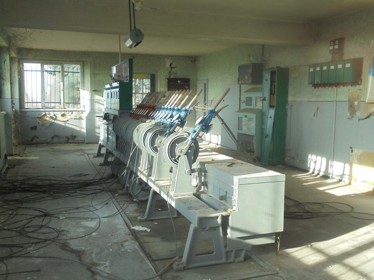 Zdewastowane wnętrze dawnej nastawni mieszczącej się w budynku dworca.