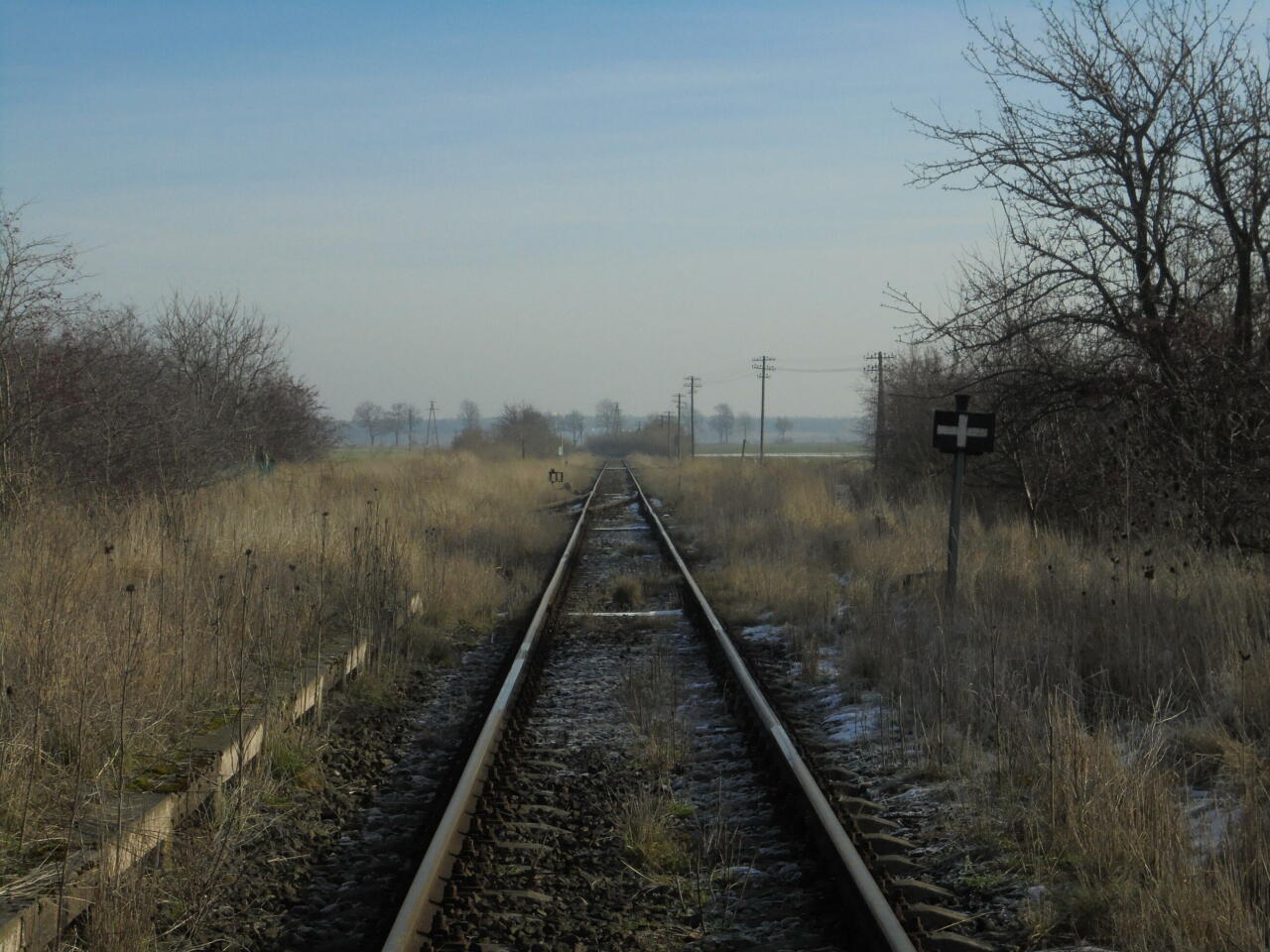 Unieważniony semafor F, wjazdowy z Kąkolewa/Leszna. Widok w kierunku wschodnim.