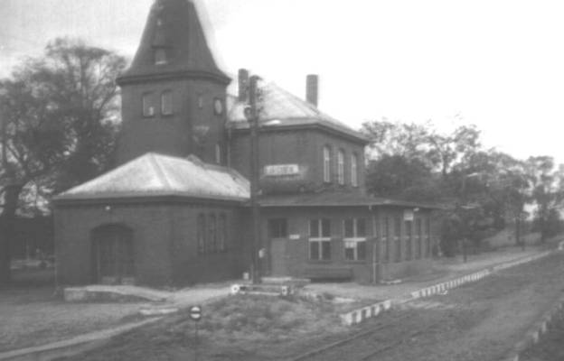 Stacja w okresie międzywojennym. Fotografia udostępniona ze zbiorów Biblioteki Publicznej Gminy Jaraczewo.