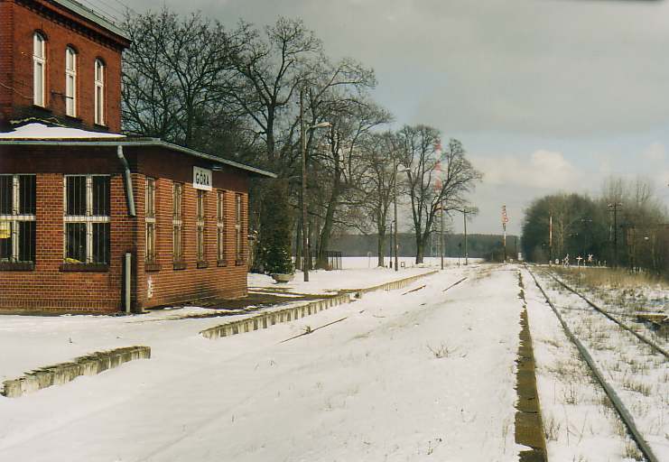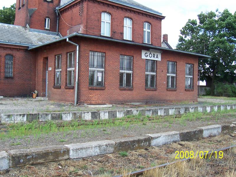Góra. Widok w kierunku Jarocina (wschód). Po lewej stronie budynek dworca wraz z nastawnią.