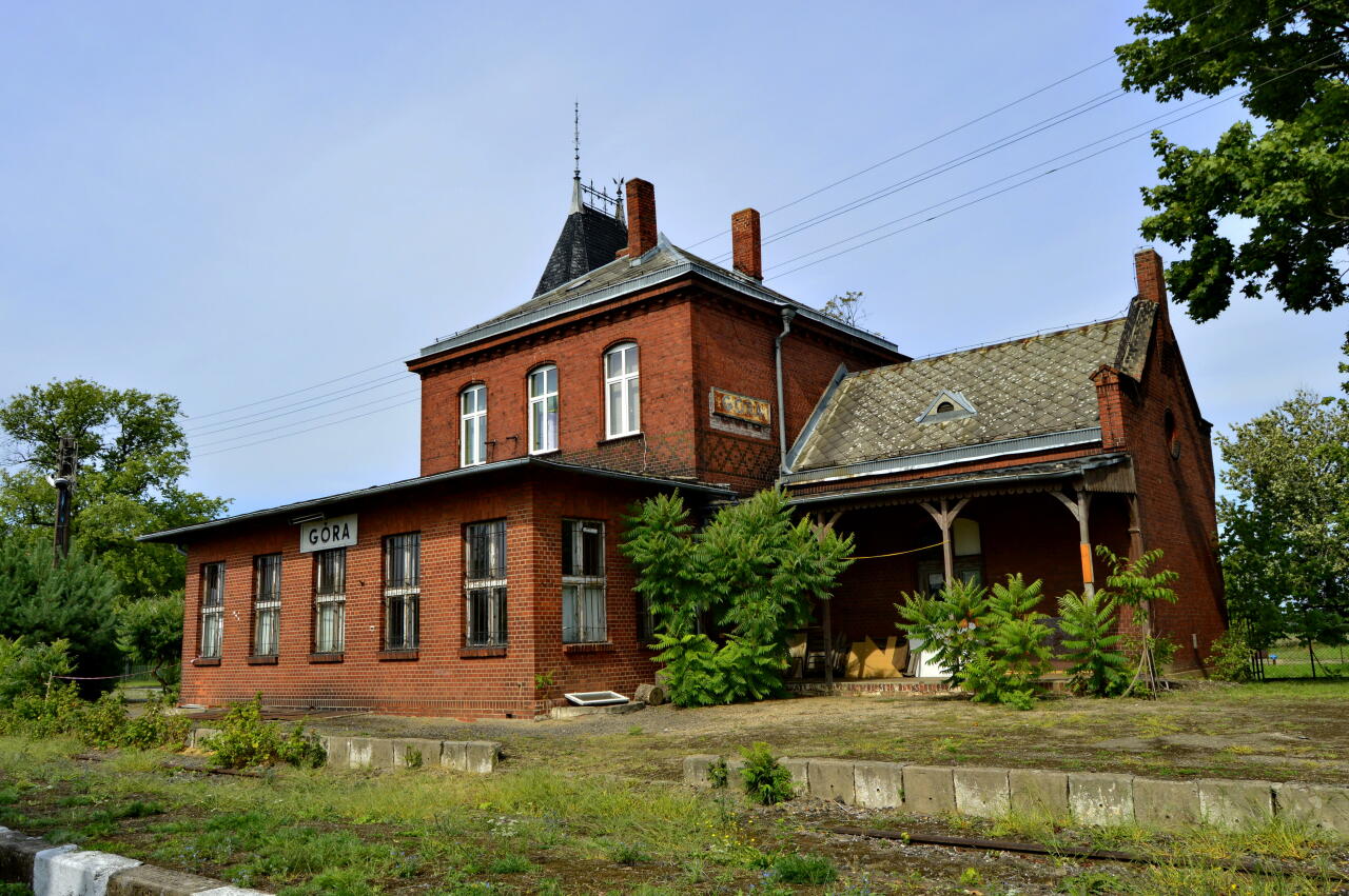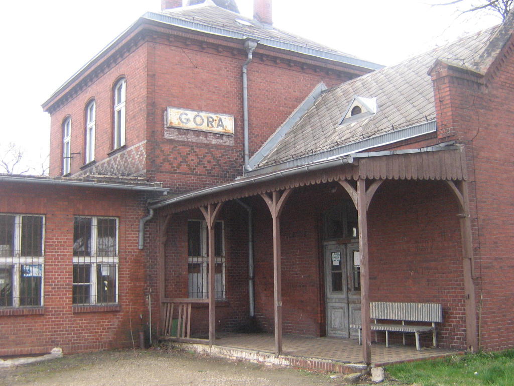 Góra. Budynek dworca wraz z nastawnią. Widok od strony peronów (północy-zachód).