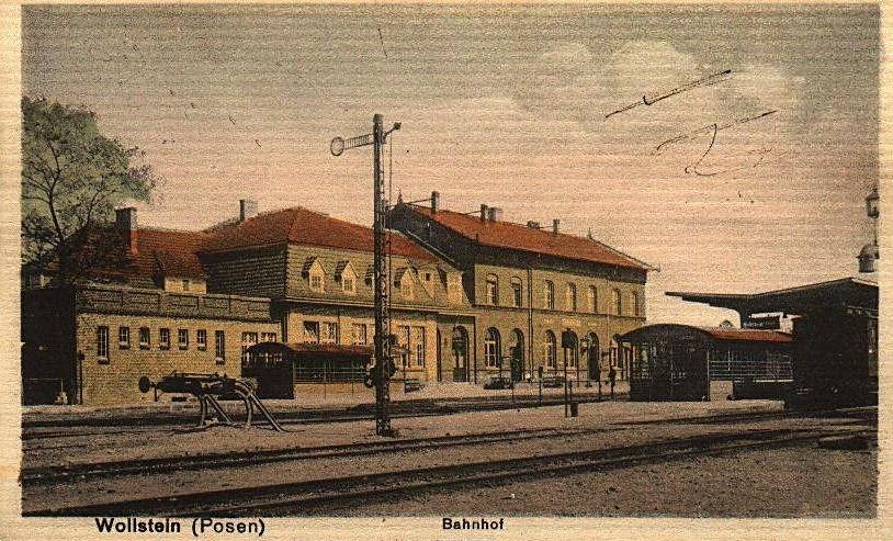 Wolsztyn na dawnej pocztówce ze zbiorów Miłosza Telesińskiego. Przedwojenny budynek dworca. Widok od strony wjazdów z Sulechowa i Zbąszynia.