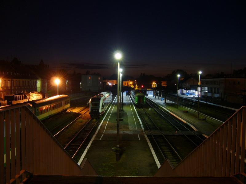 Pusta stacja w Wolsztynie o świcie w przeddniu Parady Parowozów 2014.