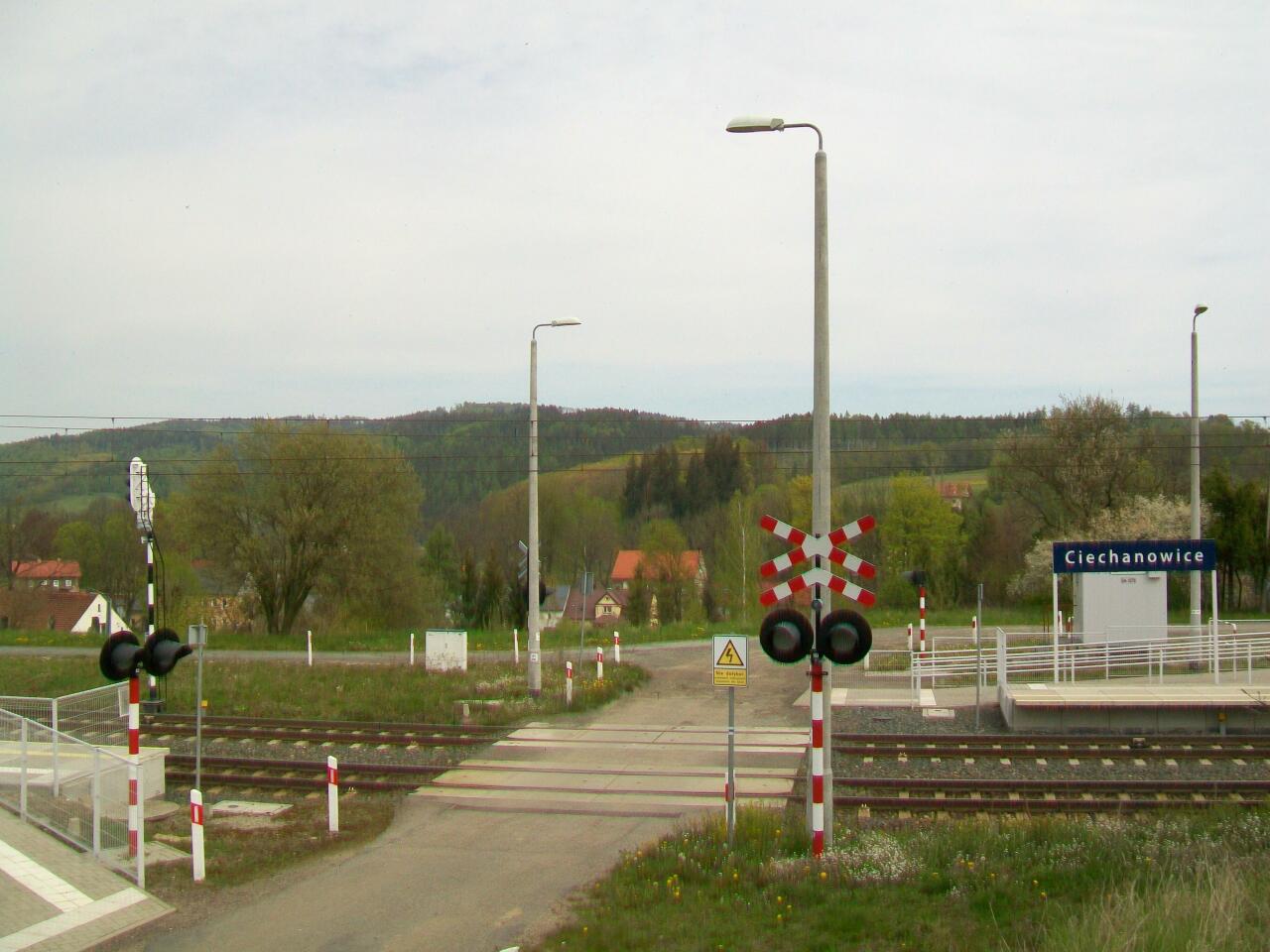 Kiedyś była to stacja (tak wynika z dawnych map), ale prawdopodobnie w czasie budowy drugiego toru została ona zdegradowana do roli przystanku. Budynek dworca leży po północnej stronie linii, a po drugiej jest drewniana budka. Ciechanowice to przystanek osobowy. Prawdopodobnie przed wojną był stacją i posiadał semafory kształtowe. (info: Zbigniew Szałkiewicz, 22-08-2008) Opis infrastruktury: Podczas remontu wiaduktów na zakolu rzeki Bóbr, przed stacją Janowice Wielkie otworzono posterunek odstępowy Miedzianka. Znajdował się on przed pierwszym z mostów. Był to wagon towarowy postawiony na podkładach. Posiadał urządzenia kluczowe z tablicą Zazulaka. Wagon stał przed samym mostem, po prawej stronie patrząc od strony Ciechanowic. Pomiędzy mostami usypany był maleńki peron o jednej krawędzi z podkładów kolejowych. Tam wysiadali i wsiadali dyżurni. Był to posterunek czynny okresowo. Został zlikwidowany po ukończeniu remontu obu mostów. Od strony Janowic Wielkich przy pierwszym moście była nastawnia wykonawcza. Oba posterunki były osłonięte semaforami wjazdowymi. Na tych mini nastawniach była również blokada stacyjna i liniowa. Na zewnątrz było po jednym rozjeździe, przekładanym ręcznie i zamykanym na klucz. Pracowałem tam na delegacji. (info: Zbigniew Szałkiewicz, 22-08-2008) Opis budynków: Budynku dworca już nie ma - tylko fundamenty. Drewniana wiata powoli rozsypuje się - brakuje desek, bywa podpalana przez miejscową chuliganerię. (info: adam_z, 2008-02-25). |