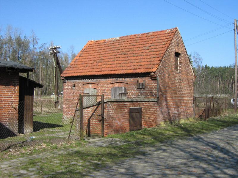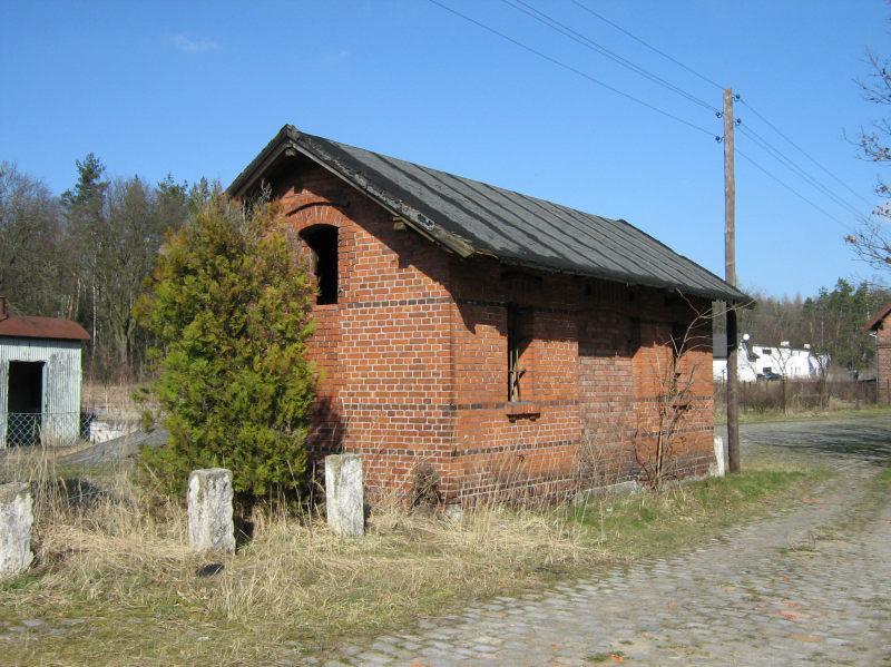 Budynek gospodarczy wele dworca (z lewej, poza kadrem) od strony podjazdu. Widok w kierunku Sycowa.