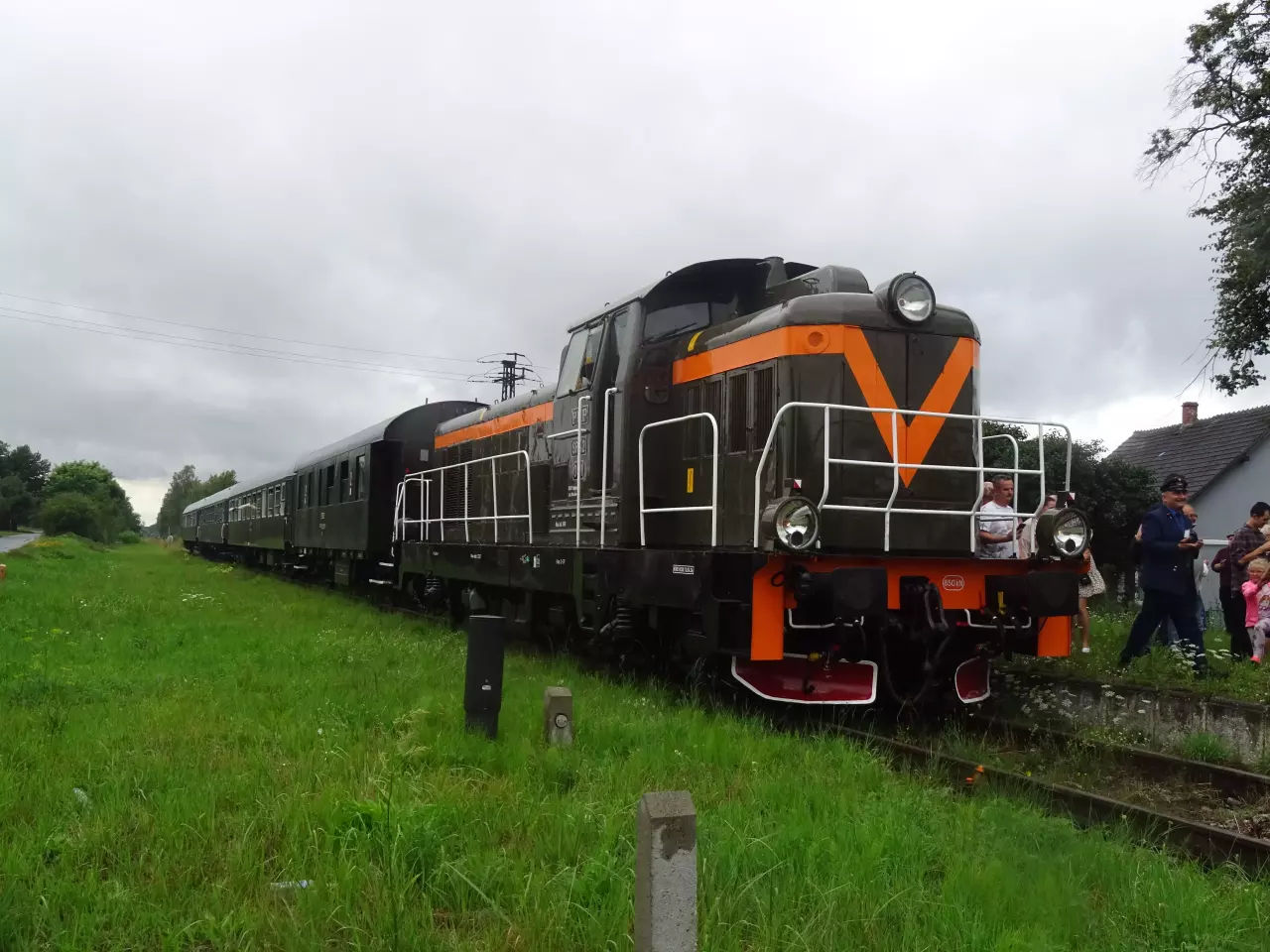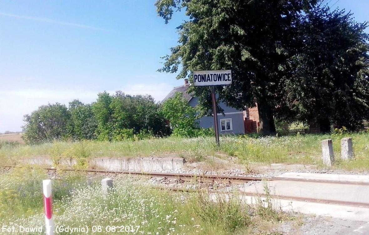 SP 42 001 z turystycznym pociągiem osobowym nr 66211, ze stacji Wrocław Gł. do stacji Kępno, na przystanku Poniatowice. Widok w stronę Oleśnicy/Wrocławia. Pociąg uruchomiony przez Klub Sympatyków Kolei we Wrocławiu, w ramach pożegnania odcinka Oleśnica-Kępno na czas remontu infrastruktury.