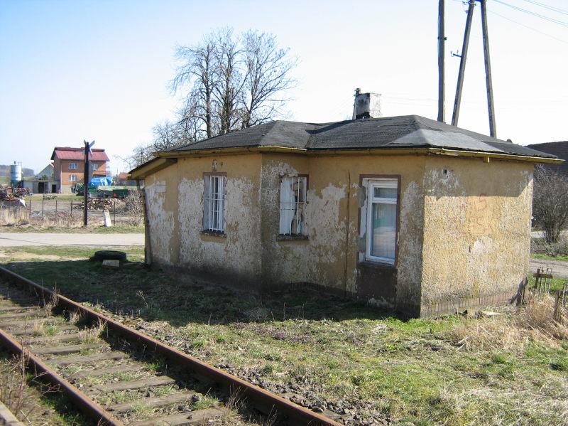 Widok na przystanek od strony Oleśnicy. Z lewej peron, poczekalnia, budynek gospodarczy. Z prawej dawna budka dróżnika.