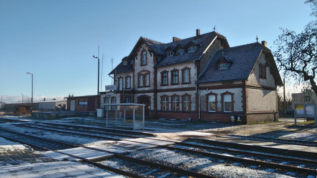 Gołańcz to dawny węzeł kolejowy dwóch linii nr 378 z Gołańczy do Chodzieży oraz nr 356 z Gołańczy do Poznania. Trasę z Gołańczy do Chodzieży otwarto w 1908 r., zamknięto dla ruchu osobowego w 1986 r., a w 2004r. całkowicie usunięto z ewidencji kolejowych. Długość linii wynosiła zaledwie 35 km. Linia od Gołańczy do Poznania jest nadal czynna. Natomiast odcinek tej linii od Gołańczy przez Kcynię, Szubin do Bydgoszczy, jest nieczynny dla ruchu pasażerskiego od 2004 roku i częściowo towarowego. Na stacji znajdowały się 2 perony, nastawnia, magazyny, ładownia, parowozownia i wieża wodna. Obecnie obsługiwana jest dla ruchu pasażerskiego przez spółkę Koleje Wielkopolskie. (info 2012r.) |