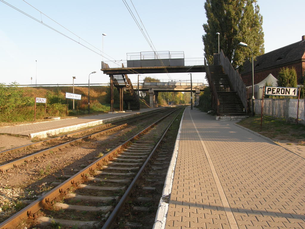 | Opis ogólny: Zlikwidowany przejazd kolejowy zastąpiony wiaduktem nad peronami. Dwutorowa linia z Grabowna rozdziela się na dwie jednotorowe linie do Oleśnicy i Wrocławia. Brak rozjazdów. (info: PiotrekK, 2007-12-07) |