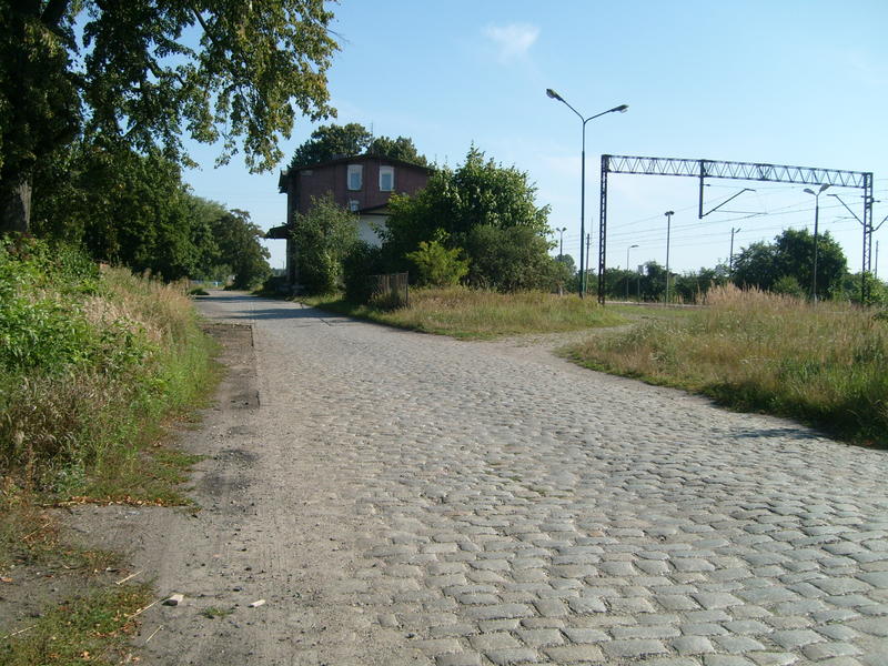 Droga dojazdowa do budynku dworca (w tle). Widok w kierunku południowym.