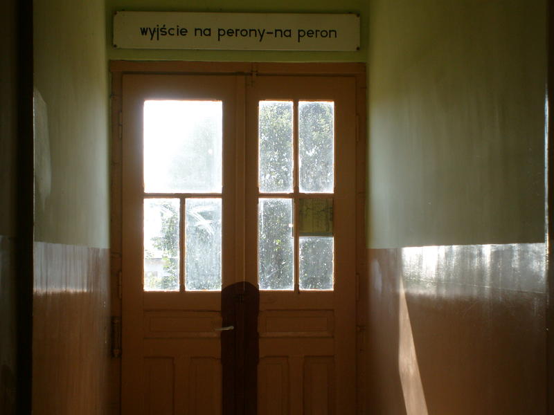 Wyjście na perony z poczekalni na dworcu.