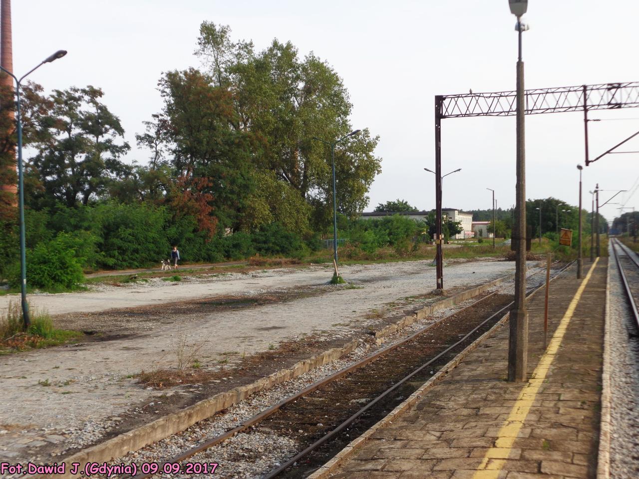 Plac przeładunkowy i peron 1. Widok od strony Grabowna Wielkiego. W tle, po lewej dworzec.