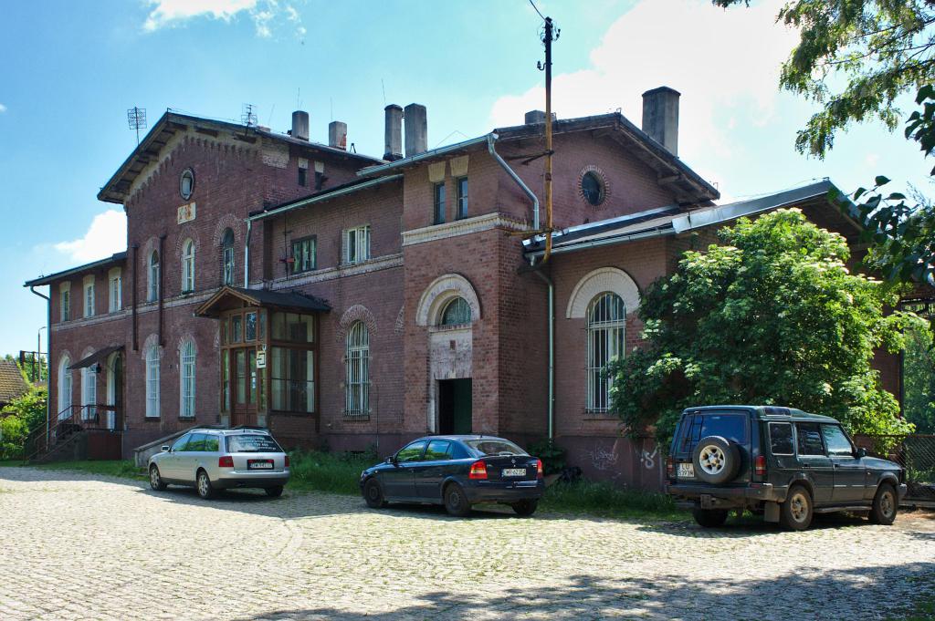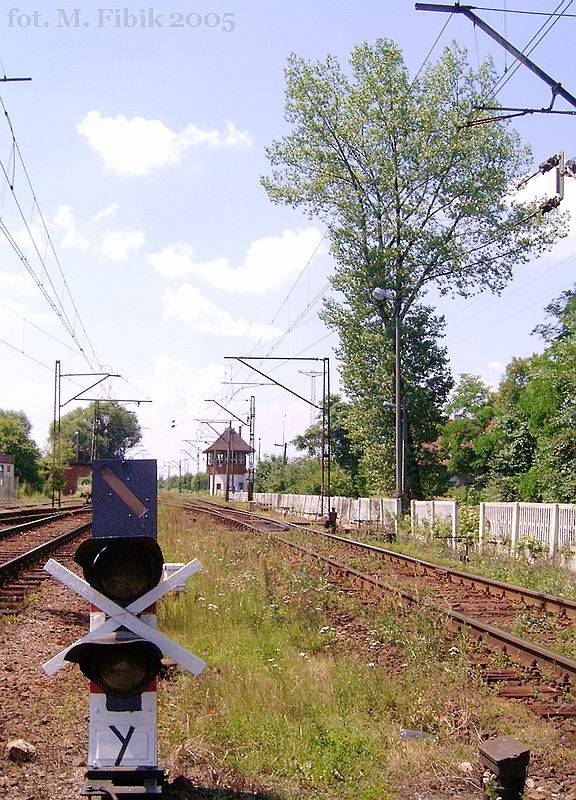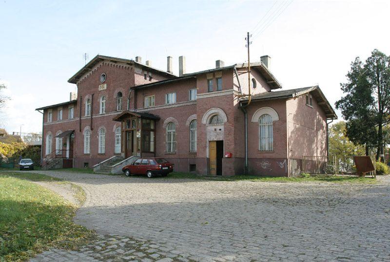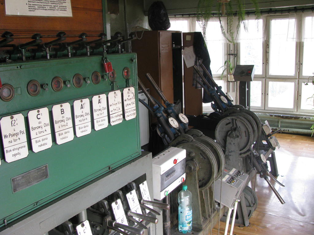 Budynek nastawni dysponującej DŁ w zachodniej części stacji. Przejazd w ul. W. Broniewskiego. Widok z południowej strony torów. To z tej nastawni wydano 9 lipca 1977 r. polecenie jazdy manewrowej lokomotywy luzem za zwrotnicę wjazdową w celu przestawienia jej na tor 4. Maszynista, wbrew sygnałom "stój" dawanym z nastawni wyjechał na szlak i zderzył się z pociągiem pospiesznym Praga - Moskwa. Zginęło 11 osób, nie wiadomo, czy nie było więcej ofiar - obywateli ZSRR. Widok w kierunku północno-zachodnim; w prawo perony, w lewo Wrocław.