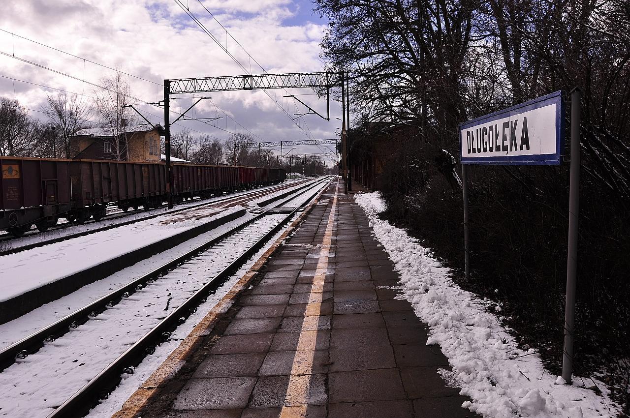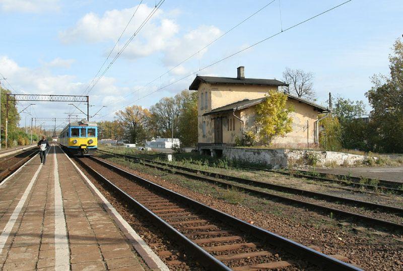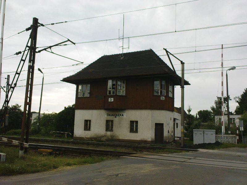 Nastawnia dysponująca Dł stojąca na wjeździe z Wrocławia (z lewej), wele przejazdu kolejowego przez ul. Władysława Broniewskiego. Widok w kierunku północno-zachodnim; w prawo perony.