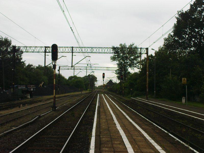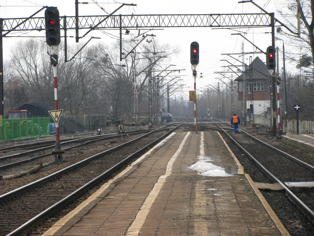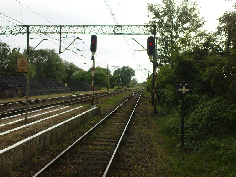 Końcówka peronu 2. Od lewej semafory: Y, D. Po lewej skład węgla. Widok w kierunku południowo-zachodnim (Wrocław).