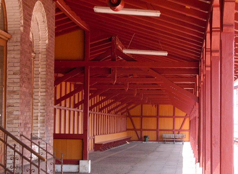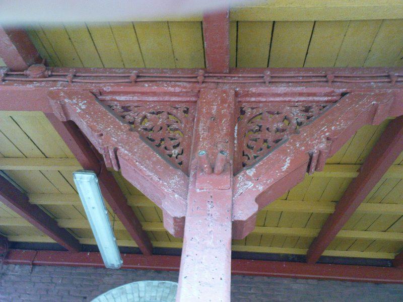 Detal architektoniczny wiaty peronowej przy budynku dworca.