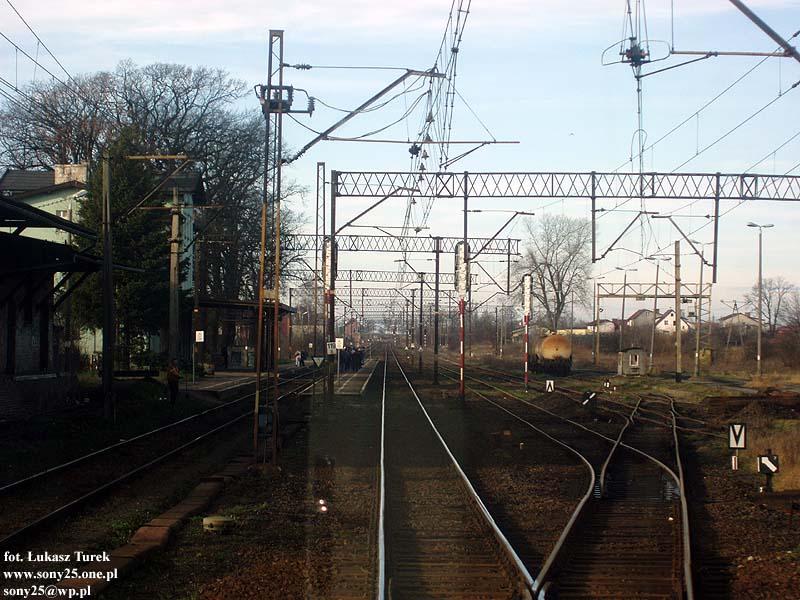 Widok na perony w stronę Oleśnicy (północny-zachód). Z prawej plac przeładunkowy z dźwignicą.