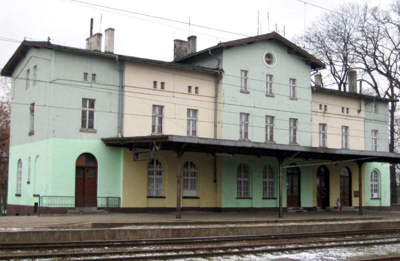 Budynek dworca od strony peronów. Kierunek południowy; w lewo Namysłów, w prawo Oleśnicy.